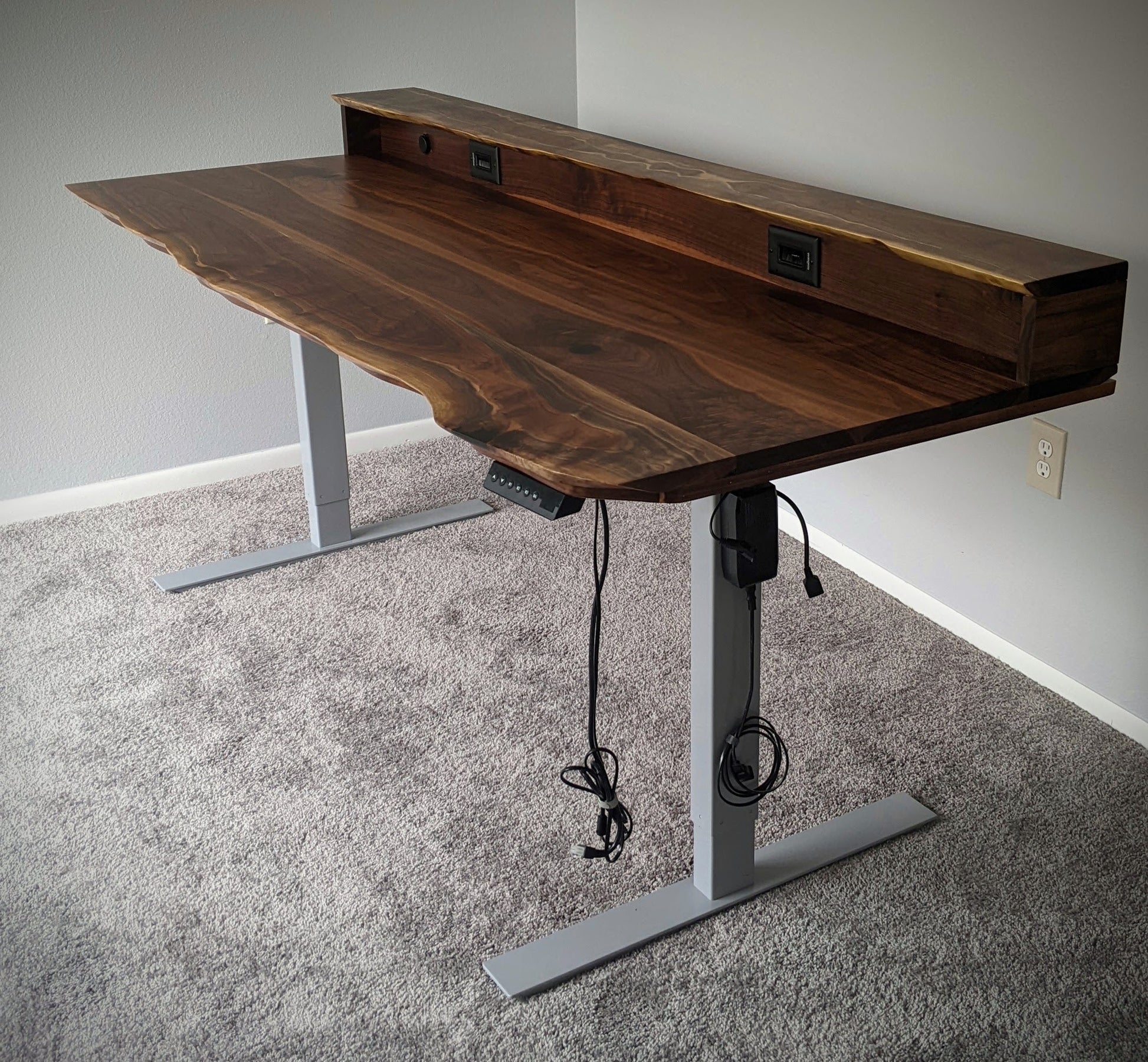 Walnut Desk with a Power Lift. Great for Work/Gaming. Desks are special order. Pricing varies by wood type, size, lift, LED, and size.